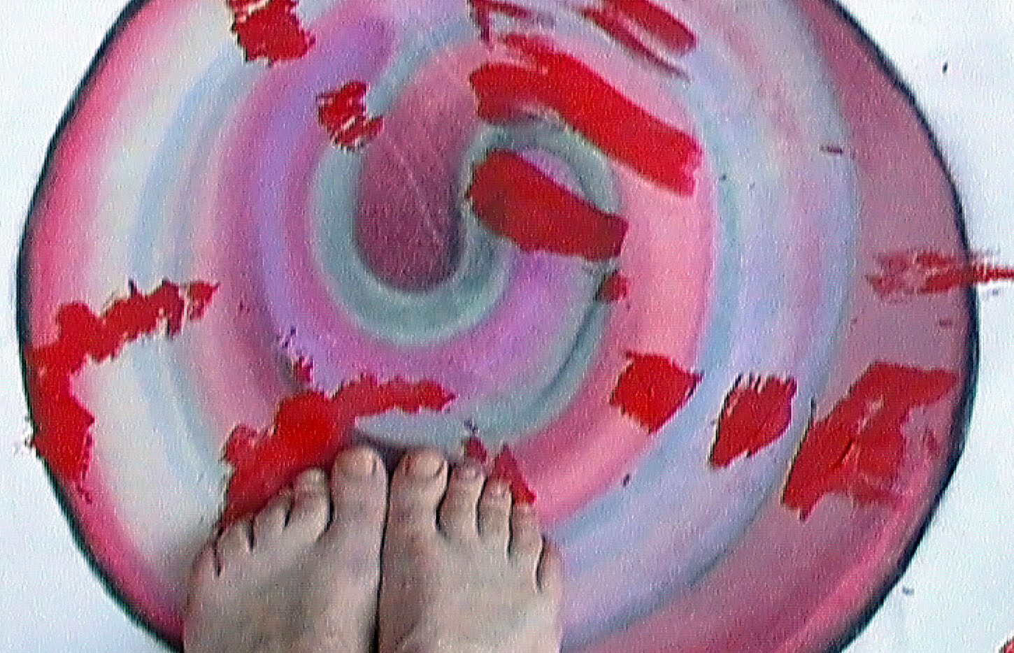 Aquí van 3 vídeo bocetos sobre la fusión de mi cuerpo con una de mis obras anterior al año 2000.